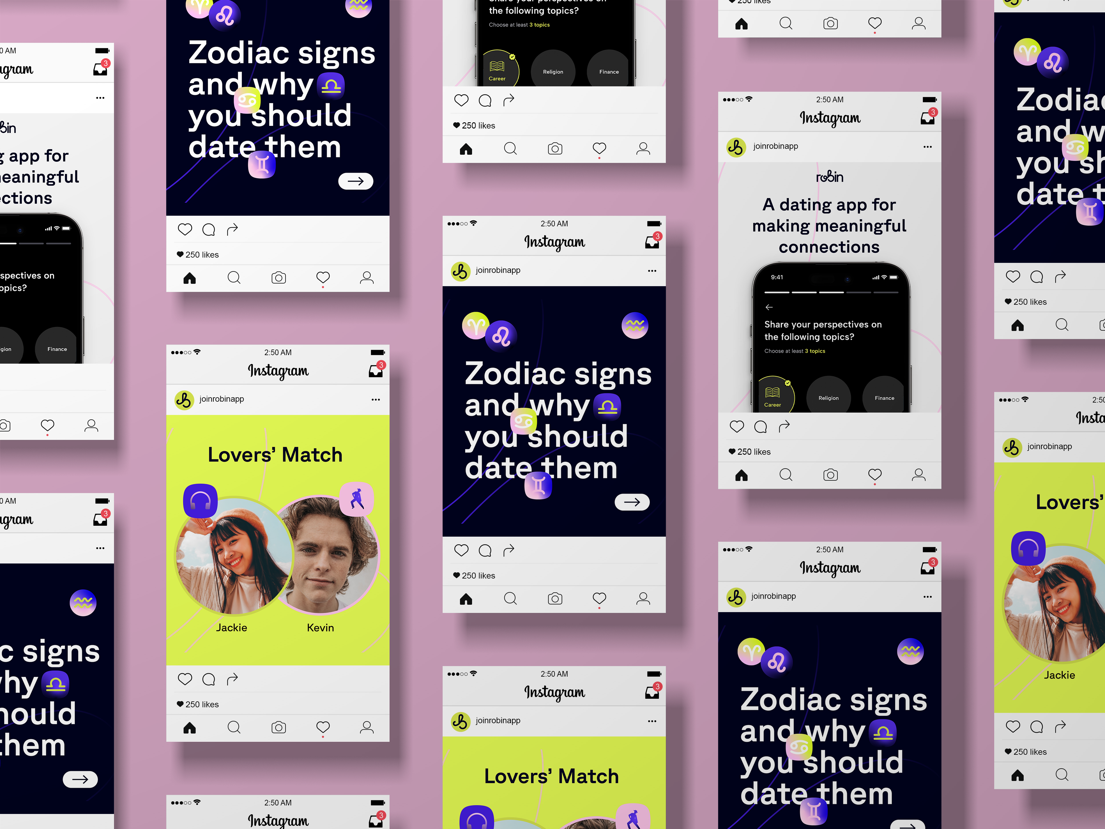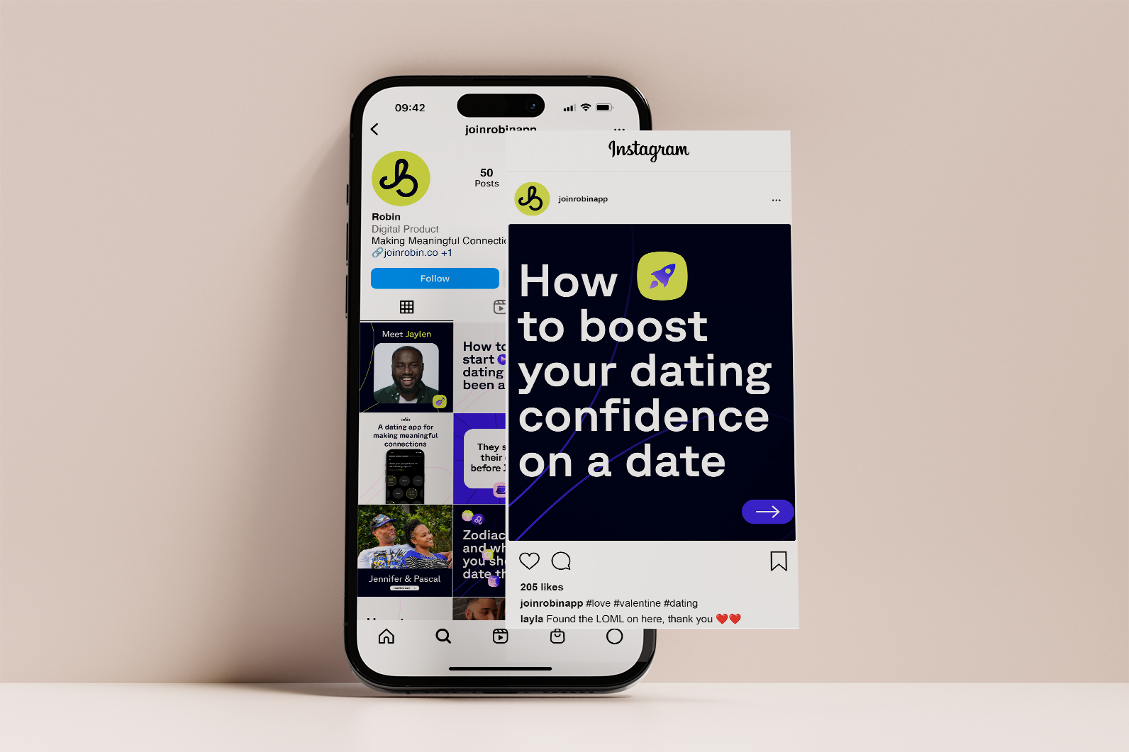 For Robin, a dating platform focused on fostering meaningful connections, we developed a scalable social media asset system that embodies its brand values of authenticity and genuine relationships.